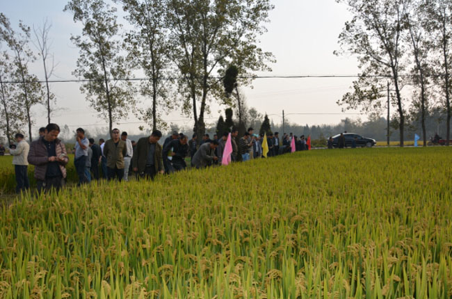 來自全省28個縣的120位代理商及部分種植大戶共同參觀了位于舒城杭埠鎮(zhèn)的種植現場,實地觀看武運粳29號的田間表現,紛紛夸贊該品種分蘗能力強、結實率高、穗型大、產量高、熟相好。特別是武運粳29號經受了今年低溫陰雨寡日照氣候的考驗,表現出抗倒、抗病和抗逆性強的特點,增強了與會代表下年度大力推廣的信心。