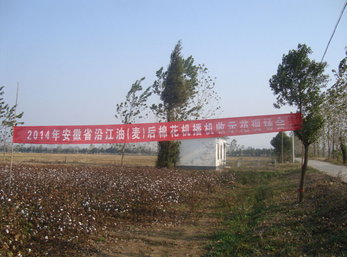 由中國(guó)農(nóng)業(yè)科學(xué)院棉花研究所、安徽省農(nóng)業(yè)科學(xué)院棉花研究所、安徽宇順?lè)N業(yè)開(kāi)發(fā)有限公司聯(lián)合在安慶布點(diǎn)示范的2014年安徽沿江油(麥)后棉花免耕直播機(jī)收示范取得圓滿成功!2014年11月6日—7日,分別在安徽省農(nóng)業(yè)科學(xué)院棉花研究所及望江示范點(diǎn)舉行機(jī)收現(xiàn)場(chǎng)觀摩會(huì),安徽宇順?lè)N業(yè)總經(jīng)理王發(fā)文率公司相關(guān)技術(shù)人員參觀機(jī)收現(xiàn)場(chǎng)!